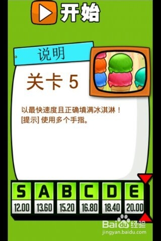 第5關名為“狂熱冰淇淋”,玩家需要以最快的速度將帶點綴的冰淇淋桶填滿,注意可以使用多個手指。這一關其實頗有難度,小編為了最快速度通關,結果經常點多了結果反而失敗了,第一眼看準確每一組是幾個冰激凌球非常關鍵,還有就是千萬要管住自己的手指頭,一定不能多點……