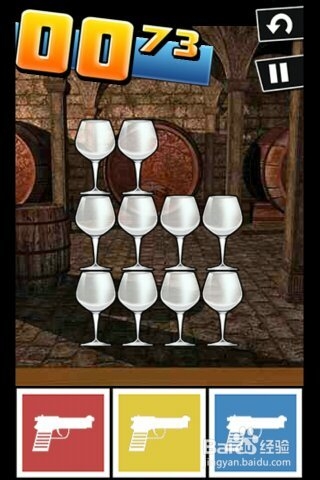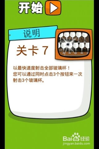 第7關,是牛仔酒吧射擊酒杯。點擊游戲中的手槍,進行射擊杯子,不需要瞄準,快速,射擊杯子就是拿高分的方法。