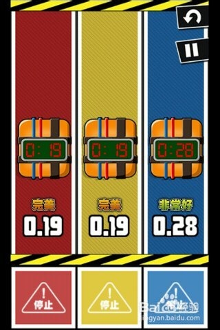 第9關, 關閉停止定時炸彈。這個非常的需要適應這個時間的緩沖差。雖然是接近0.00 是好事,但是,炸彈多了,手去點擊時有個時間差,所以需要自己掌握住。停止時時間越接近0,得分就越高。