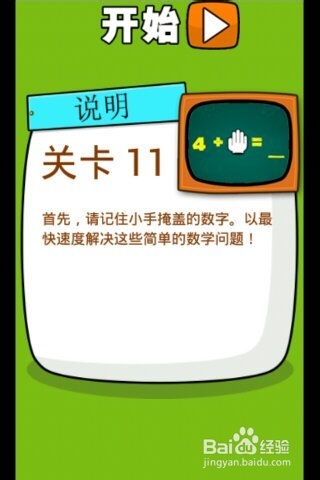 第11關, 喜歡數學。這個非常的考驗數學能力以及記憶能力,這個關卡弄了我起碼4次,我才有點感覺。完全是數學,記憶,眼力的結合。開始前面3個題目是練習,只有記住上一個題目的三個數字,你才玩的下去。