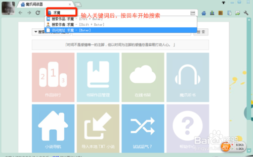 一、使用魔爪下載 TXT 小說(shuō)的方法打開(kāi)魔爪后,我們?cè)诘刂窓诶镙斎肽阆胍螺d的小說(shuō)名稱,按下“回車(chē)”,開(kāi)始搜索。(我們使用“求魔”這本小說(shuō)為例)