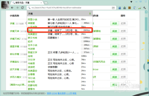 接著會(huì)顯示出很多和“求魔”相關(guān)的結(jié)果,鼠標(biāo)移到“求魔”文字上邊,會(huì)顯示很多“求魔”的來(lái)源。我們選擇一個(gè)比較新、速度又比較快的來(lái)源。點(diǎn)擊打開(kāi)。