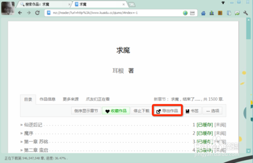 接著就顯示“求魔”小說(shuō)的目錄了。我們直接點(diǎn)擊“離線閱讀”按鈕。