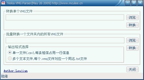 Nokia VMG Parser是一款可以將單個或批量vmg文件轉(zhuǎn)換為txt文件,直接可以使用記事本查看短信內(nèi)容、時間、發(fā)/收件人等信息;或者可以將多個vmg文件的信息導(dǎo)入到Excel表內(nèi),方便查看和管理。