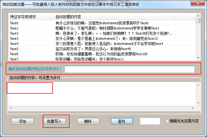 我們需要輸入觸發(fā)條件及自動回復(fù)內(nèi)容(支持導(dǎo)入文本),輸入完畢后點(diǎn)擊“添加”即可。