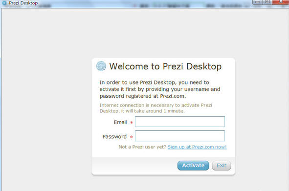 prezi desktop是prezi的離線編輯軟件,使用該軟件前需要登陸prezi的賬號(hào)(免費(fèi)賬號(hào)的使用期為30天)