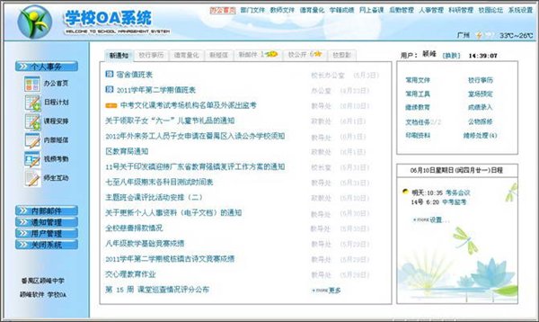 3、除了基本辦公功能,集成學(xué)校常見的功能。專業(yè)、專注、實(shí)用,例如部門文件、教師文件處理,成績處理等。非常方便學(xué)校使用。實(shí)用性是通用辦公系統(tǒng)無法比擬的。