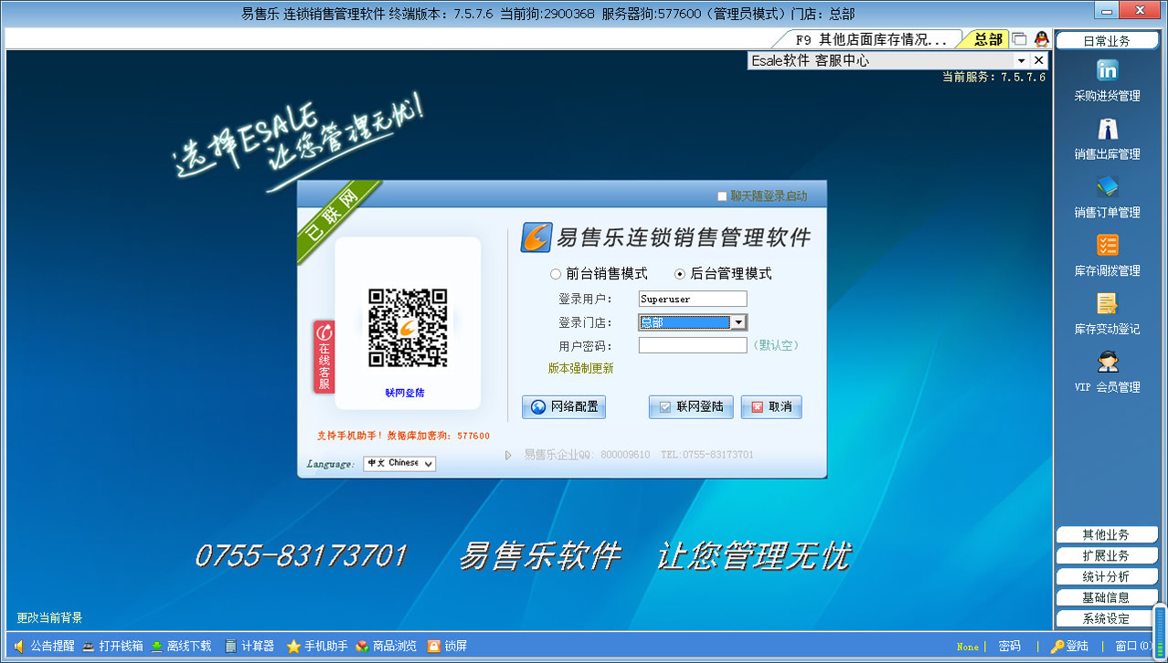 Esale服裝連鎖店銷售管理軟件(網(wǎng)絡(luò)版)適用于多店面連鎖加盟網(wǎng)絡(luò)化管理,行業(yè)包括:服裝、內(nèi)衣、鞋類、床上用品,嬰幼用品以及飾品銷售,小商品銷售。