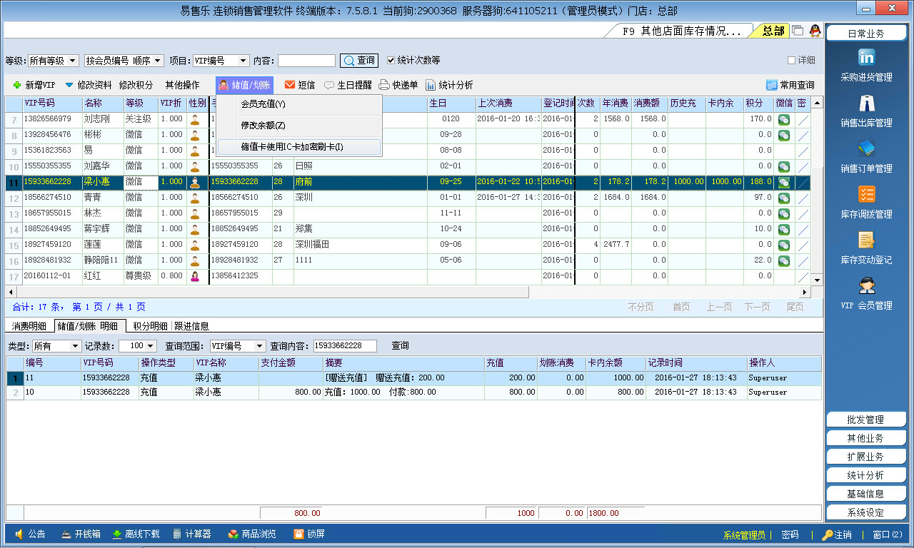2)支持會員積分管理,會員價格管理,會員儲值管理。