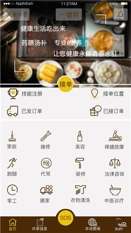 一鍵幫App是一個(gè)勞動(dòng)服務(wù)信息對(duì)接的軟件。是以接發(fā)單方式,將臨時(shí)勞動(dòng)服務(wù)供需雙方的信息,進(jìn)行快速對(duì)接的軟件。用戶(hù)通過(guò)點(diǎn)選勞動(dòng)服務(wù)需求內(nèi)容和位置設(shè)定后,便可進(jìn)行發(fā)單,本地的勞動(dòng)服務(wù)方可通過(guò)接單或搶單的方式,快速的與您對(duì)接,使您的勞動(dòng)服務(wù)需求得到快速解決。各類(lèi)專(zhuān)業(yè)勞動(dòng)服務(wù)機(jī)構(gòu)或個(gè)人,只需在本軟件進(jìn)行技能注冊(cè),便可接單或搶單,特別是因工作時(shí)間不能固定而不好找工作的群體,可以在本軟件進(jìn)行個(gè)人技能注冊(cè),在您所設(shè)定的接單位置區(qū)域內(nèi),如有與您所注冊(cè)技能相應(yīng)的勞動(dòng)服務(wù)需求信息,您的手機(jī)會(huì)及時(shí)提示您,您可根據(jù)個(gè)人時(shí)間和情況的安排,進(jìn)行接單或搶單。通過(guò)接單或搶單的方式,進(jìn)行勞動(dòng)輸出,為他人提供勞動(dòng)服務(wù)。