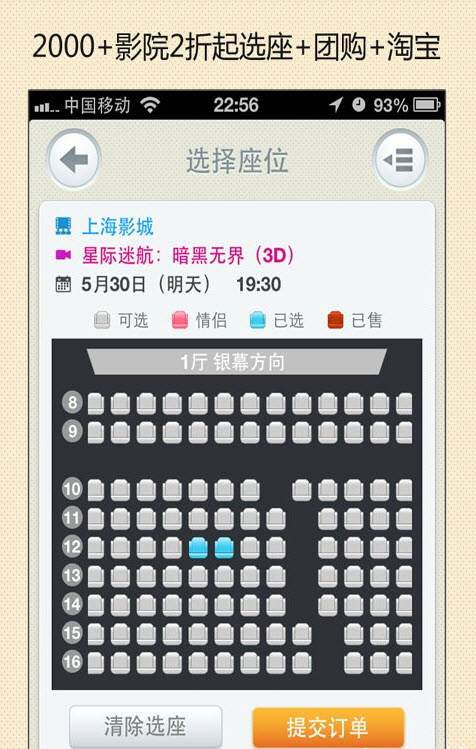 1.購買電影票(在線訂座,電子券,團(tuán)購)