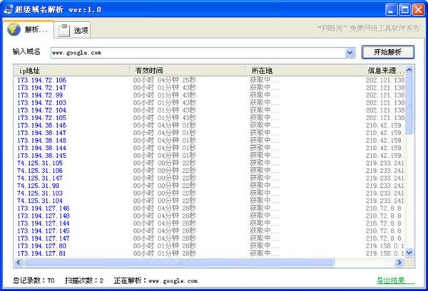 SuperDns 是一款能瞬間解析出域名對應(yīng)的幾乎所有IP地址,并能定位IP地址所在位置的解析工具。