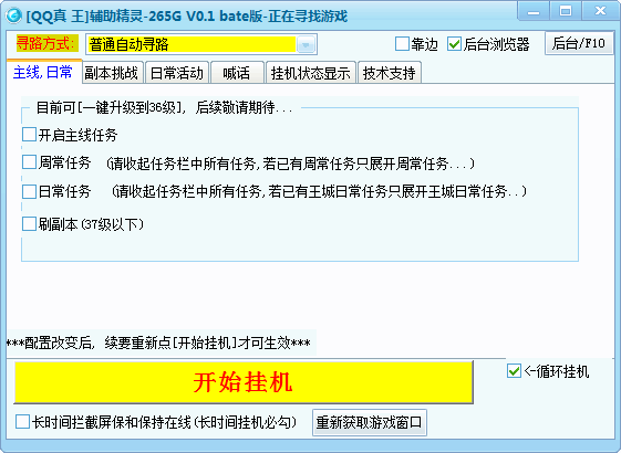 265G真王輔助精靈是同名游戲的輔助工具,完全模擬按鍵操作,不修改任何游戲數(shù)據(jù)和封包,并非外掛,各位用戶可以永久免費(fèi)使用 。
