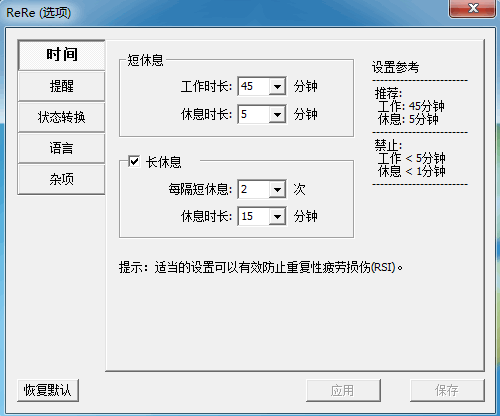 1.rere一款定時休息提醒軟件可以在你埋頭工作時,周期性地提醒你休息一小會兒,特別適合長時間使用電腦的人。