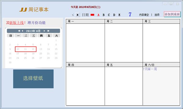 可將該周記事崁入至桌面背景中,方便隨時(shí)查看及修改,易操作不占用電腦資源及內(nèi)存。
