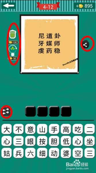 接下來(lái),會(huì)出現(xiàn)四個(gè)腳字,這四個(gè)腳字都是倒著寫的,我們可以理解為四腳朝天。我們?cè)谟檬髽?biāo)的左鍵依次點(diǎn)擊四、腳、朝、天后,這一題就結(jié)束了。我們?cè)谒伎汲烧Z(yǔ)的時(shí)候,要結(jié)合圖中的提示綜合考慮。
