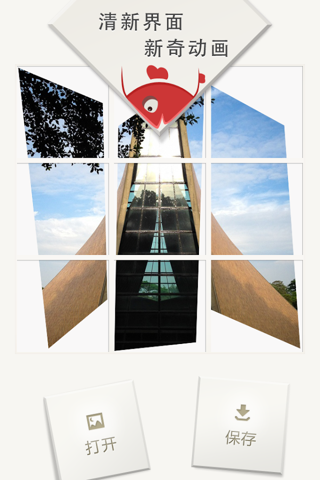 這款9Cut做的很有創(chuàng)意,是一款非常有趣的圖片分割工具。它可以通過(guò)對(duì)圖片的個(gè)性裁切,上傳到社交網(wǎng)絡(luò)后排列出特別的視覺效果。記得以前QQ群的群社區(qū)相冊(cè)在聊天界面的預(yù)覽是最新上傳的照片的時(shí)候,小編把一張大圖切成了9份按順序上傳然后就霸了整個(gè)群聊天界面的相冊(cè)預(yù)覽界面,看起來(lái)效果還蠻好看的,這款安卓應(yīng)用就可以制造這種效果,很精致的一款小應(yīng)用。