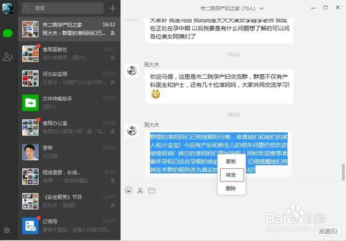 5、打開自己聊天的界面選中聊天內(nèi)容。復(fù)制,轉(zhuǎn)發(fā)。圖,文字都能保存。