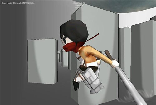《進擊的巨人》是玩家根據(jù)時下熱門動漫《進擊的巨人》改編的一款同人游戲,游戲采用unity引擎制作,在游戲中玩家控制的角色在障礙物間穿梭躲避巨人的攻擊并捕殺巨人。