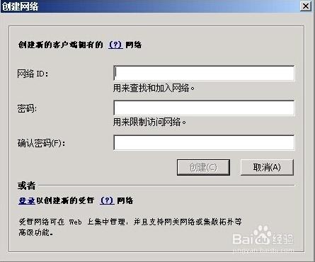 現(xiàn)在,您便可以創(chuàng)建屬于您的一個網(wǎng)絡(luò)了!點擊創(chuàng)建新網(wǎng)絡(luò)按鈕!便會出現(xiàn)這個界面!