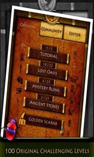 圣甲蟲,埃及文明的崇拜生物,也是基督教圣物之一。在這里我們叫它們“屎殼郎”。在埃及的雕像石刻中我們經(jīng)常能看到圣甲蟲圖騰。而當紅綠兩色品種的圣甲蟲完成使命之后,現(xiàn)在他們最后的任務(wù)就是歸位于圖騰之中。仔細觀察每一關(guān)的圖案,可動的機關(guān)主要有兩種,轉(zhuǎn)變方向的直角路徑和可抬升降低的障礙方塊。玩家需要合理去掌控甲蟲歸位的路線,讓甲蟲用盡可能少的步數(shù)到達終點。請注意,除非無路可走,否則紅甲蟲遇到障礙默認左轉(zhuǎn),綠甲蟲遇到障礙默認右轉(zhuǎn)。