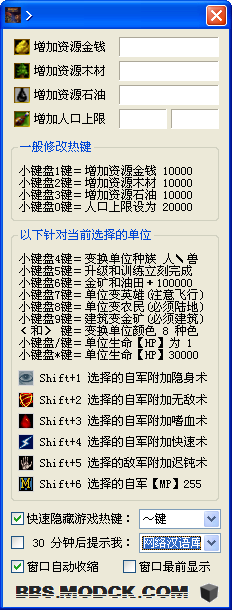 魔獸爭霸2戰(zhàn)網(wǎng)版修改器快捷鍵: