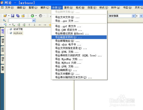 打開已轉(zhuǎn)為HTML格式格式的nyf文件,點(diǎn)擊菜單:分享-導(dǎo)出磁盤目錄樹