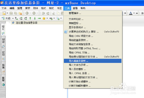 運(yùn)行myBase Desktop ver 7.0,點(diǎn)擊菜單:文件-創(chuàng)建數(shù)據(jù)庫,輸入文件名和密碼,創(chuàng)建一個(gè)新的數(shù)據(jù)庫。然后,點(diǎn)擊菜單:工具-導(dǎo)入磁盤目錄樹,選擇你剛導(dǎo)出的文件夾,點(diǎn)確定就大功告成了。