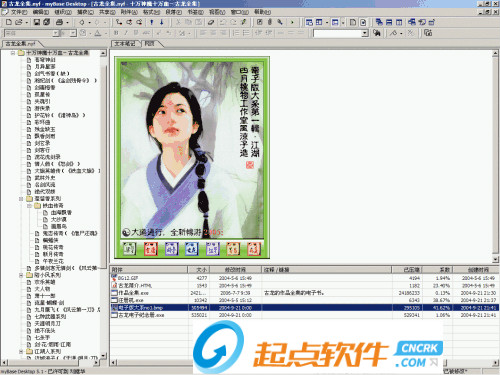 Mybase內(nèi)鑲的瀏覽器可以像查看HTML/MHT一樣查看諸如JPG/GIF/PNG等類型的web內(nèi)容文件。所以你可以將圖象放在一個(gè)條目的附件箱內(nèi)。當(dāng)你打開一個(gè)節(jié)點(diǎn)時(shí),Mybase會(huì)自動(dòng)利用內(nèi)鑲的瀏覽器為你顯示存儲(chǔ)的圖象。