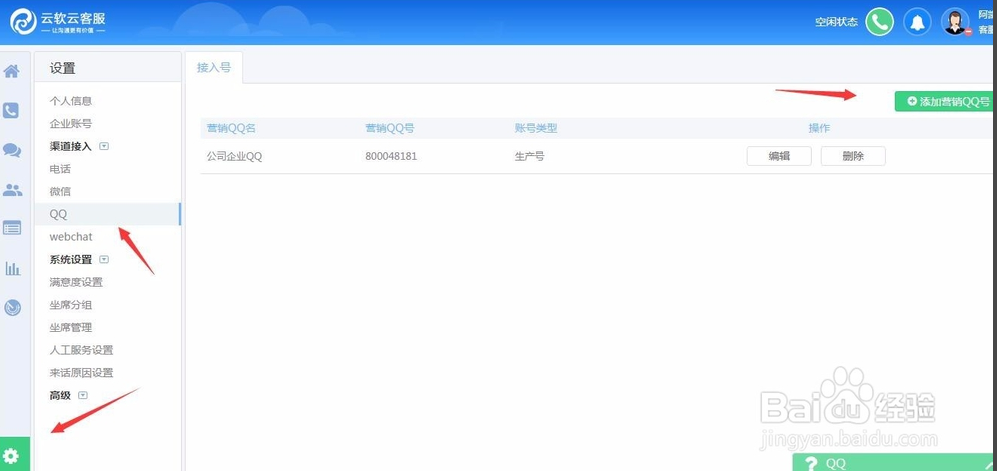 如果已經(jīng)是營(yíng)銷QQ白金版的話,在后臺(tái)設(shè)置好以后需要聯(lián)系客服系統(tǒng)的在線客服和營(yíng)銷QQ的人員對(duì)接開通權(quán)限。開通后營(yíng)銷QQ的對(duì)接就完成了,這個(gè)在線客服系統(tǒng)還可以對(duì)接微信、網(wǎng)頁、app、呼叫中心等。