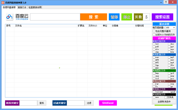 百度網(wǎng)盤搜索神器是一款由易語言開發(fā)的百度網(wǎng)盤搜索工具,該工具具有永久免費(fèi),簡(jiǎn)單實(shí)用,綠色免安裝等特點(diǎn),能幫助用戶搜索、下載百度網(wǎng)盤里一些非常有用的資源,是目前功能最強(qiáng)大的百度網(wǎng)盤搜索軟件。