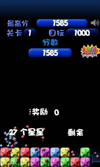 - 兩個或兩個以上的同色星星即可消除, 單指操控.- 沒有時間限制, 盡情的思考吧, 但每一關(guān)都有過關(guān)目標(biāo)分, 達(dá)到才能過關(guān).