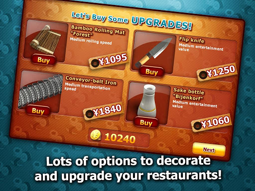 本作采用了偏重動作挑戰(zhàn)性的游戲形式,憑借獨(dú)特的模擬元素,展示出新穎的趣味性。發(fā)揮你的記憶力,熟悉每一款壽司的需要材料及數(shù)量,將使你更快完成制作。而電話預(yù)定補(bǔ)充食材也是本作的重點(diǎn)任務(wù),這一環(huán)節(jié)將充分考驗玩家的應(yīng)變能力。該游戲的操作不是很難,一開始有單獨(dú)的上手關(guān)卡設(shè)計,在這個教學(xué)關(guān)中將會告訴你每個環(huán)節(jié)的操作??腿藖砹藭谒麄冾^上顯示需要的壽司,根據(jù)菜單上的操作為客人制作不同口味的壽司來,點(diǎn)擊左側(cè)的材料到竹卷,點(diǎn)擊竹卷將竹卷卷起來即可完成一道菜,就可以制作出美味的壽司來了,如果你選錯材料就點(diǎn)擊竹簾下側(cè)的返回箭頭就可以返回了,右邊的菜譜sushi是菜單也就是制作每種壽司需要的原料及其數(shù)量,TOPPINGS配料,RICE是米飯,SAKE是灑,選擇你需要買的材料,買相應(yīng)的份量就行了,電話可以點(diǎn)擊訂貨。