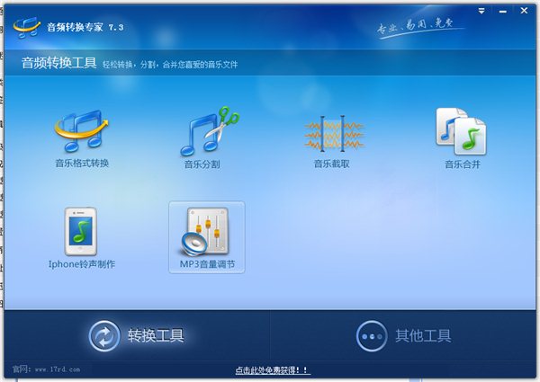6.MP3音量調(diào)整:在沒有任何音質(zhì)損失的前提下,調(diào)節(jié)MP3歌曲的音量。能夠在刻錄音樂光盤前或者拷貝歌曲到手機(jī)前,將所有MP3歌曲的音量分析并調(diào)整到相同大小,欣賞歌曲的時(shí)候就再也不必經(jīng)常調(diào)節(jié)播放器的音量了。