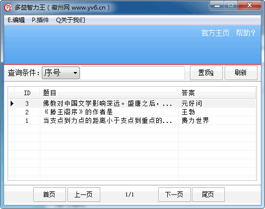 多益智力王下載 v1.3 免費(fèi)綠色版 多益智力王是一款功能強(qiáng)大的游戲答題器,游戲答題,節(jié)目答題,駕??荚囶}都可以用多益智力王做題。還可以自行添加題庫、修改題庫、和復(fù)制答案,是當(dāng)之無愧的答題王,有需要的歡迎下載。