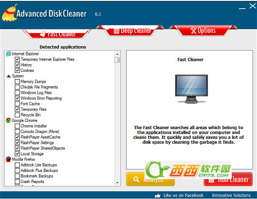 4、支持清理所有常見程序產生的垃圾,從各大瀏覽器到ps、nero、flash player都在支持之列。