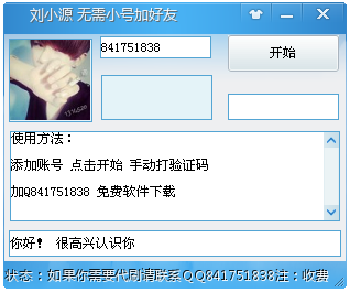 劉小源無需小號加好友 1.2 綠色版 QQ好友人數(shù)太少,又想認識新的朋友,使用劉小源無需小號加好友軟件,只需要輕松輸入驗證碼,qq無需加好友對話就可以輕松增加好友數(shù)量,無需密碼,操作簡單,歡迎下載體驗。