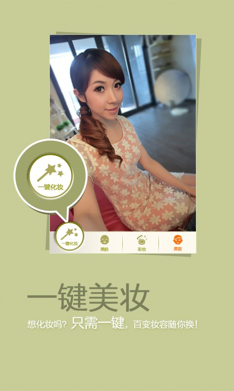 一鍵化妝:選擇喜歡的模板,一鍵輕松完成整個(gè)化妝,美圖過程,自然的效果完美呈現(xiàn);