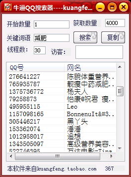 1、可搜索QQ空間的說(shuō)說(shuō)關(guān)鍵字,并指批量掃描出發(fā)表該關(guān)鍵詞說(shuō)說(shuō)的QQ號(hào)碼。