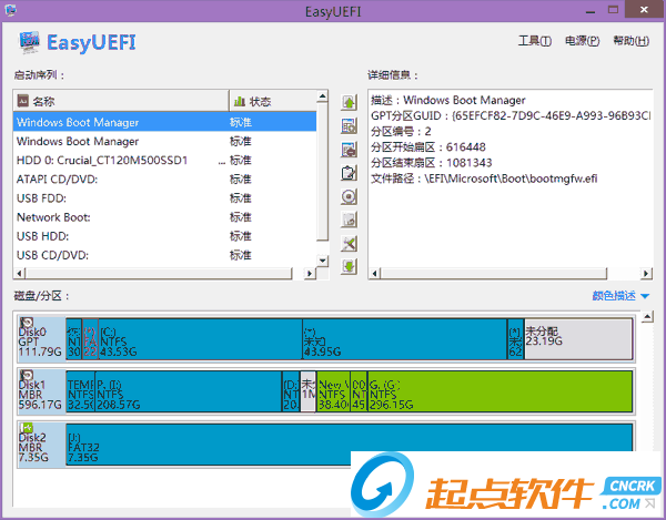 3.EasyUEFI是一個免費的用于管理EFI/UEFI啟動項的Windows軟件。您可以使用它來新建、刪除和編輯EFI/UEFI啟動項,設置重啟后使用的一次性啟動項,或者調(diào)整EFI/UEFI啟動項的順序,所有的操作均可在Windows下完成而不需要進入BIOS。