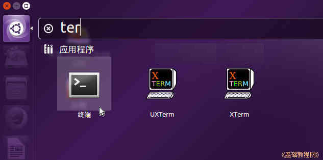 4)對于硬盤安裝,點一下左上角的圓圈按鈕,稍等在旁邊出來的文本框中輸入字母ter然后點擊下邊出來的終端圖標