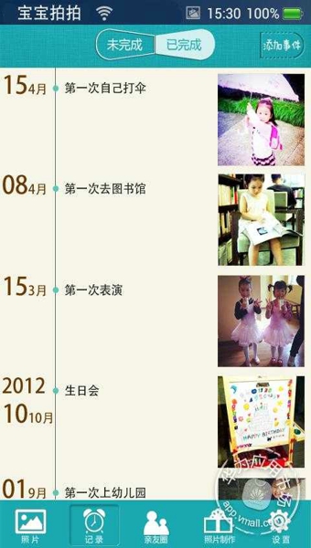 拍照事件提醒——量身定制的拍照事件加上貼心的系統(tǒng)提醒,保證不會錯過寶寶的珍貴瞬間。