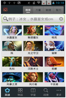 - 英雄資料 (詳細屬性,成長屬性,技能說明,加點出裝,小技巧)- 戰(zhàn)績查詢 (詳細的各項比賽數據鑒定)