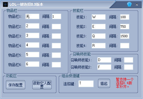 lol一鍵連招輔助 v0.3 綠色版 平時玩LOL看見別人丟技能速度很快,為了更快的打出傷害,一鍵連招必不可少!