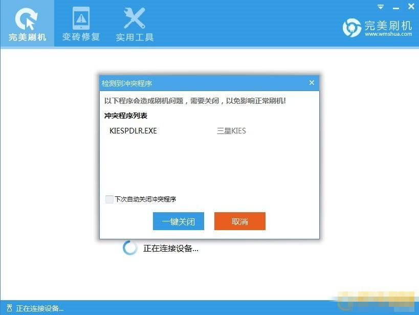 某些情況下,重啟軟件即可解決問題了,因此建議當您發(fā)現(xiàn)刷機失敗時可以嘗試重新啟動完美刷機軟件。