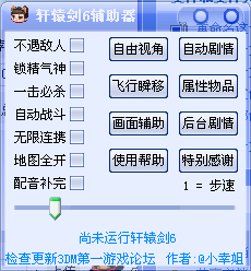 軒轅劍6輔助器是一款專為軒轅劍6打造的輔助工具,軒轅劍6輔助工具具有一擊必殺,自動(dòng)戰(zhàn)斗,無限連攜,地圖全開等等功能,歡迎下載使用。