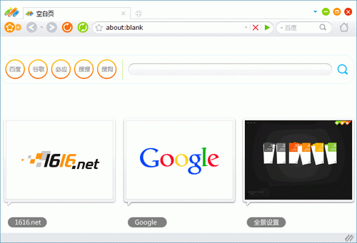 1616瀏覽器 v3.1 中文安裝版 1616瀏覽器是一款界面超炫的瀏覽器,基于最新的ie內(nèi)核,給用戶視覺和使用上帶來更快樂的上網(wǎng)體驗。1616瀏覽器打開多個網(wǎng)頁后在任務管理器中僅為一個進程,大幅提升網(wǎng)頁瀏覽速度使上網(wǎng)更加流暢。
