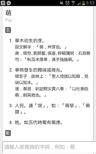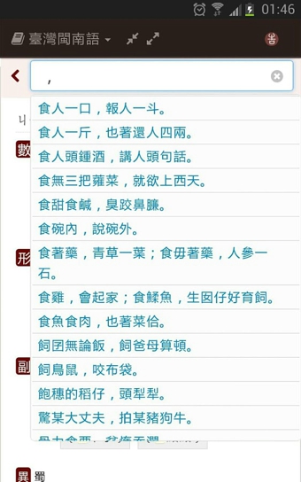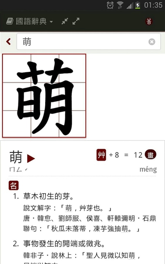 » 字典來源為教育部《重編國語辭典修訂本》、《臺灣閩南語常用詞辭典》及《臺灣客家語常用詞辭典》。