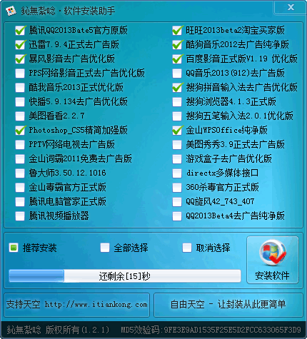 軟件安裝助手 v1.2.1 中文綠色版 軟件安裝助手完全免費,無任何版權信息,可以根據(jù)自己的喜好隨意修改。