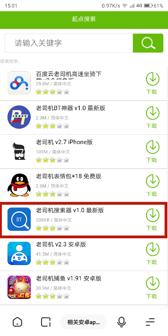 2.進(jìn)入后搜索老司機(jī)app,選擇第五個進(jìn)入